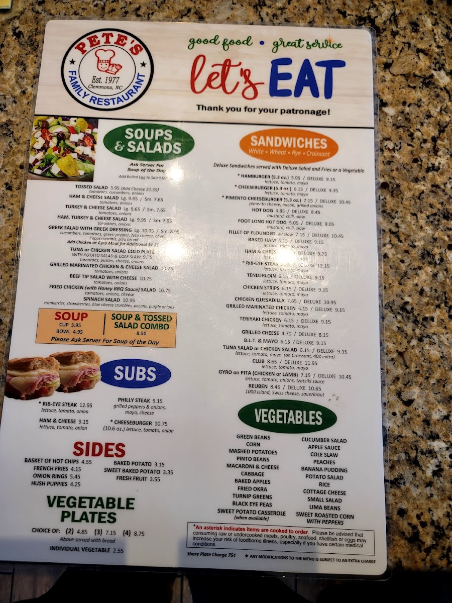 Looking for a cozy spot to enjoy some delicious food with your loved ones? Pete's Family Restaurants Menu offers a variety of dishes that’ll satisfy just about any craving. Located at 2661 Lewisville Clemmons Rd, Clemmons, NC, this place is perfect for a casual meal, whether you're in the mood for hearty comfort food or something lighter. From sizzling burgers to fresh salads, there’s something for everyone here.